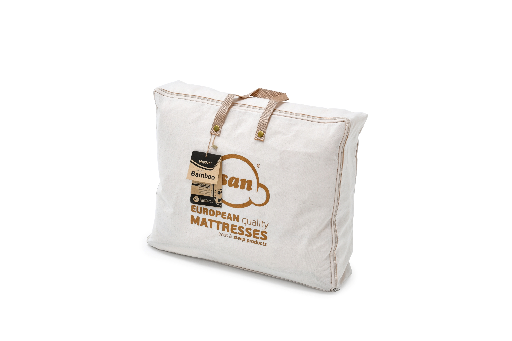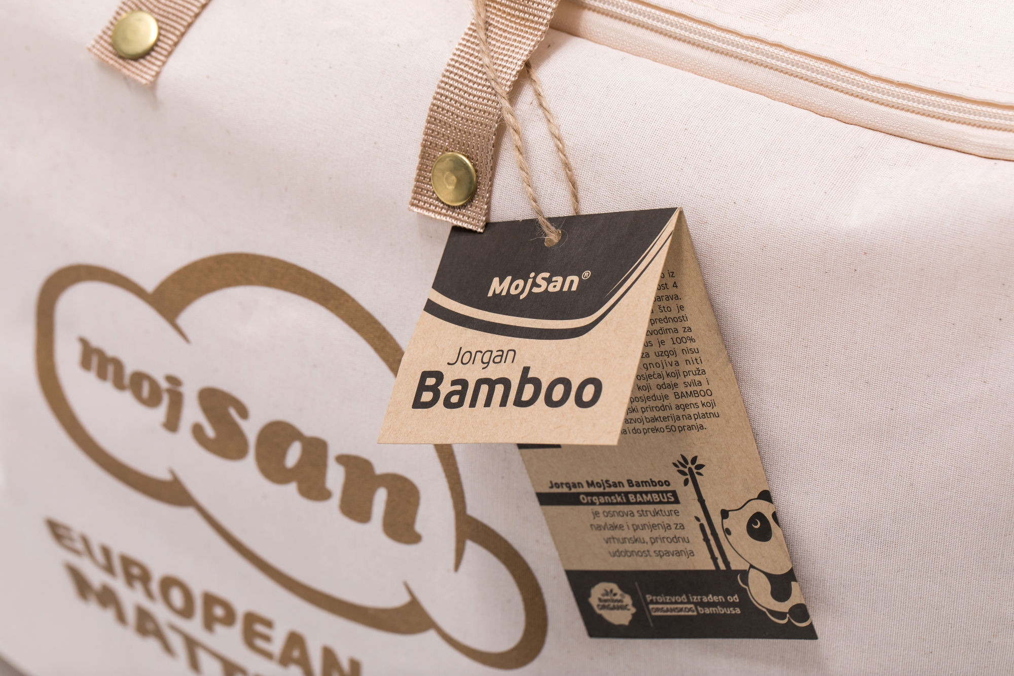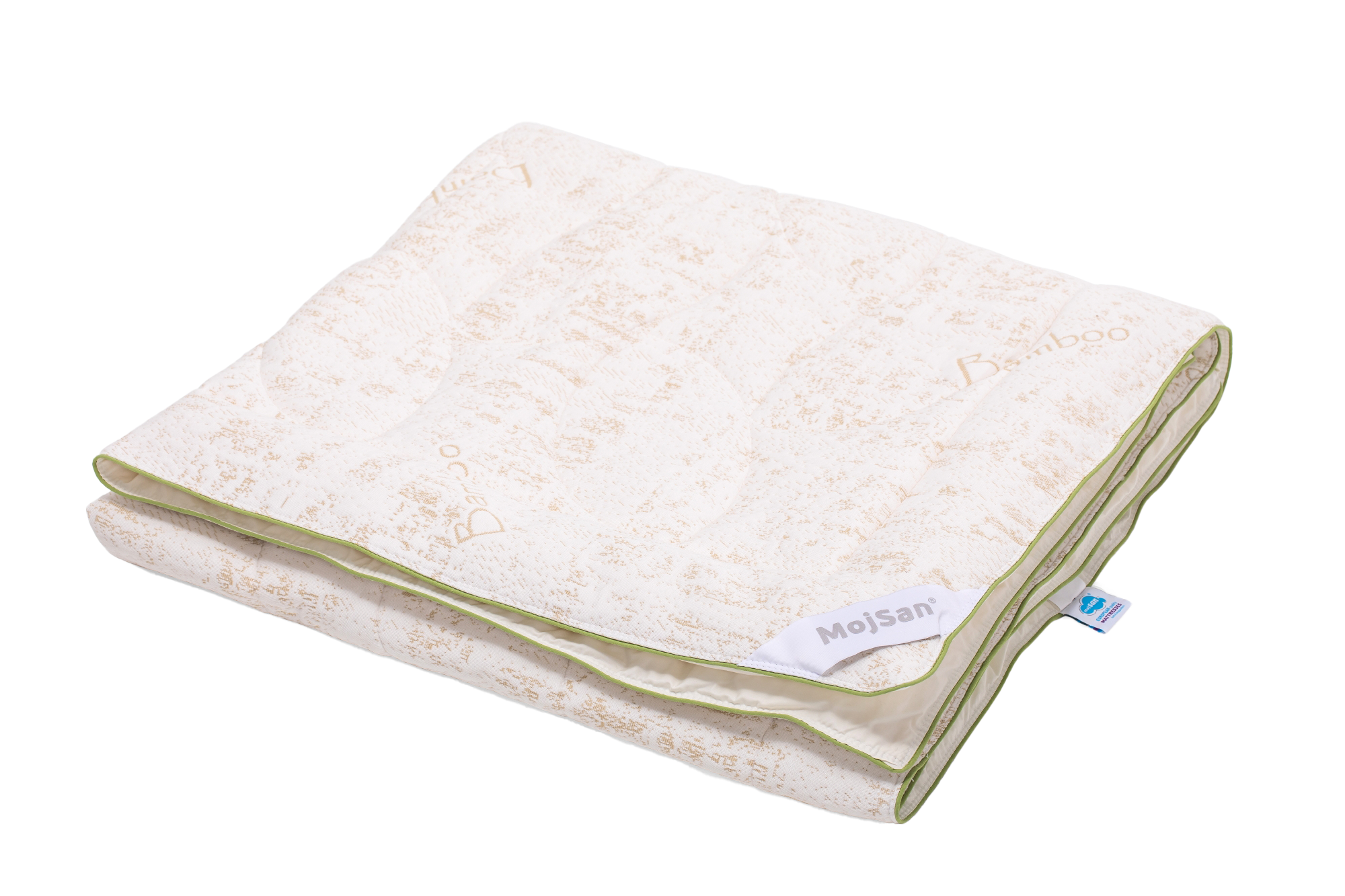 Jorgan MojSan Bamboo, praktični, cjelogodišnji pokrivač iz kolekcije MojSan namijenjen osobama sklonim alergijama, te onima koji pokušavaju naći rješenje za znojenje tokom noći. Punjen organskim bambus vlakanima u kombinaciji sa microgel nitima garantira savršen antialergijski ambijent za ugodne snove. Kombinacija materijala od kojih je izrađen svrstava ovaj proizvod u PREMIUM segment MojSan kolekcije.